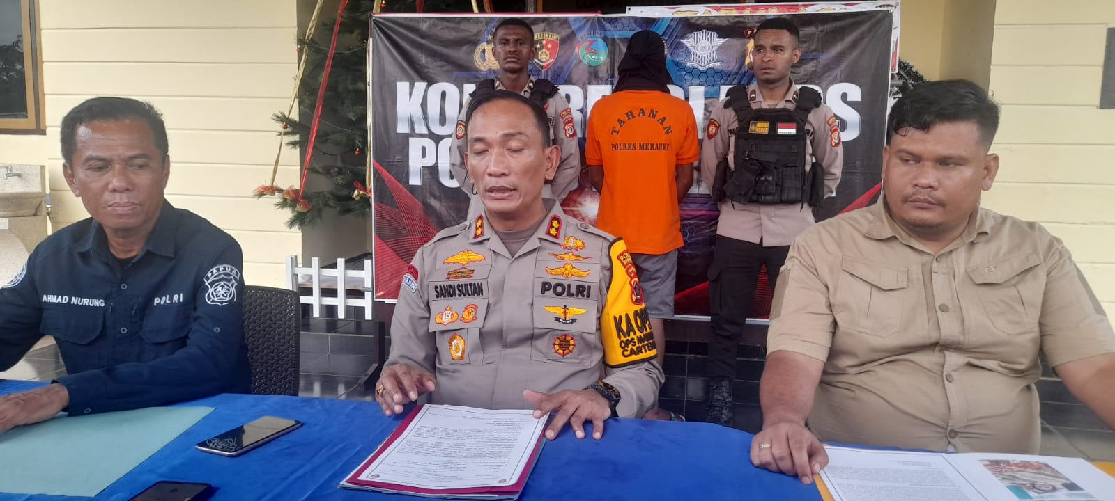 Kapolres Merauke AKBP Sandi Sultan dalam Konferensi Pers dengan sejumlah wartawan, Jumat (08/12/2023) mengatakan pengungkapan dan penangkapan pelaku berkat kerja keras anggota di lapangan dengan informasi yang di dapat dari masyarakat setempat.