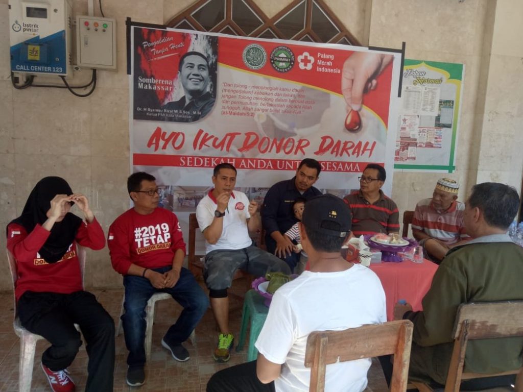 Di Lokasi tersebut sedang berlangsung kegiatan bakti sosial donor darah yang dilakukan remaja masjid Nurul Iman dan bekerjasama dengan PMI Makassar.
