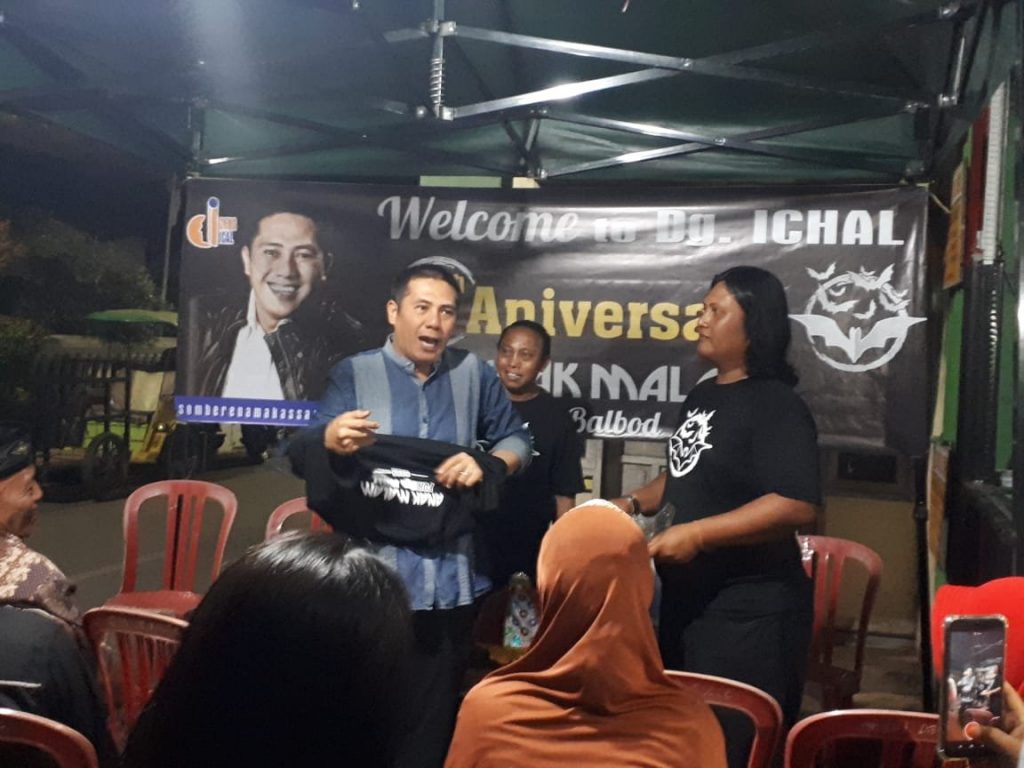 “Orang baik itu harus didukung, buktinya coba mi kita lihat baju kaos yang dipakai teman-teman, dibelakangnya tertulis Anak Malam for Dg. Ichal 2020,” ujarnya. (Saddam Buton)