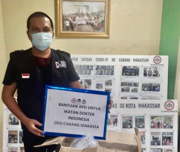 REPUBLIKNEWS.CO.ID, MAKASSAR — Wabah Virus Corona menghentakkan dunia, korban terus berjatuhan tidak pandang usia, jenis kelamin, strata sosial, agama, profesi dan jenis kulit, saatnya saling bantu membantu, ujar pimpinan Mills Sport Jakarta Official Apparel Jersey Timnas PSSI Indonesia, saat menyerahkan bantuan APD kepada Humas IDI Makassar, dr. Wachyudi Muchsin, di Kantor IDI Makassar, Jl Topaz, Kamis (18/04/2020).