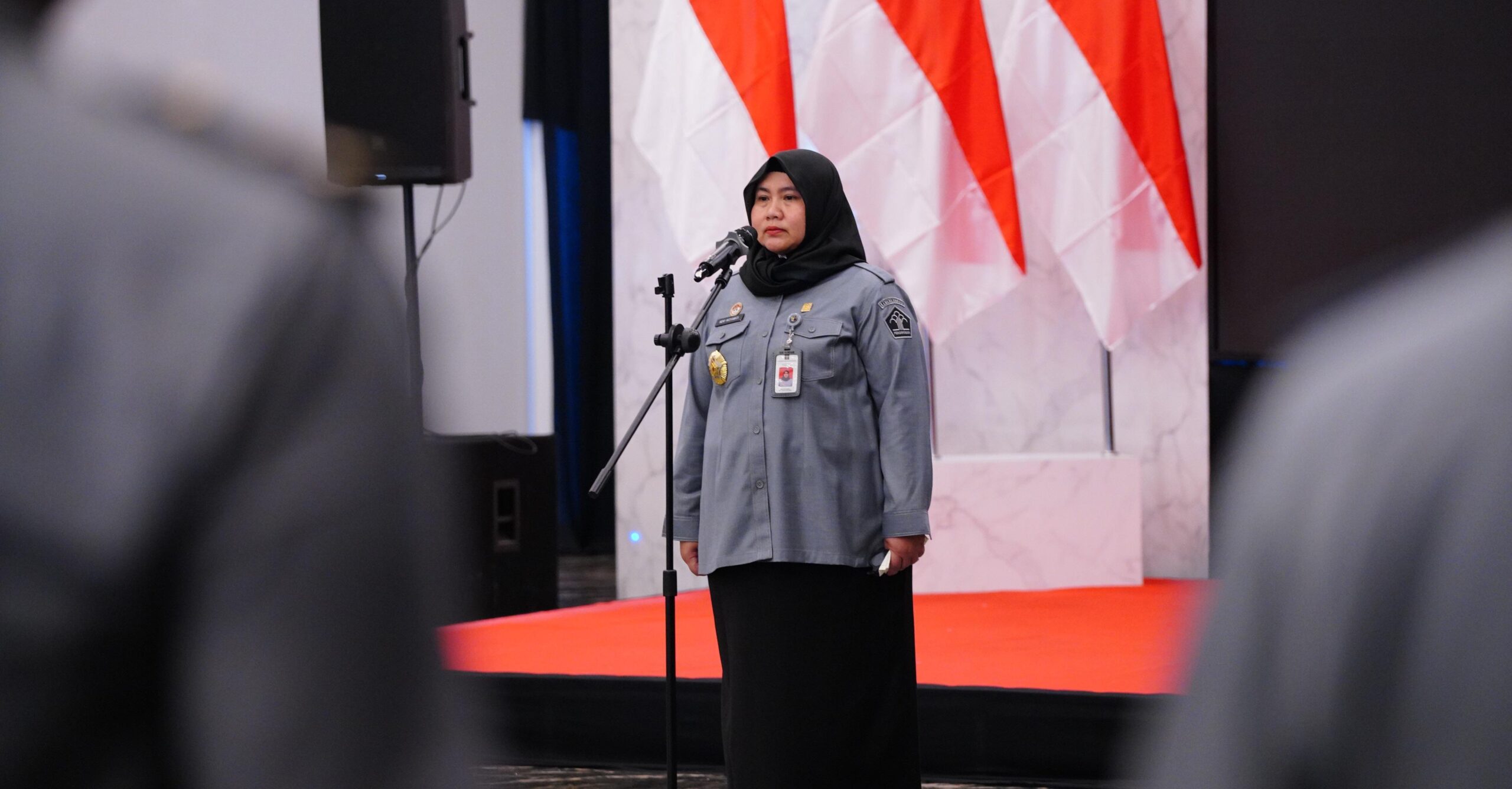 Kepala Divisi Peraturan Perundang-undangan dan Pembinaan Hukum, Heny Widyawaty, tampil percaya diri memimpin apel. Dengan tegas namun santai, dia mengingatkan pentingnya disiplin waktu bagi seluruh Aparatur Sipil Negara (ASN).