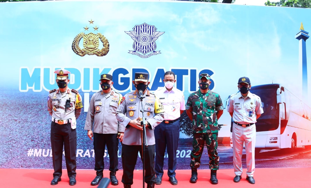 REPUBLIKNEWS.CO.ID, JAKARTA — Kapolri Jenderal Listyo Sigit Prabowo, melepas peserta mudik Gratis Polri 2022 di Parkir Timur Gelora Bung Karno (GBK) Senayan, Jakarta, Jumat (29/94/2022). Sebanyak 220 bus dengan penumpang 11.300 mengikuti progam mudik Gratis ini dengan tujuan Jawa Barat, Jawa Tengah, DIY dan Jawa Timur.