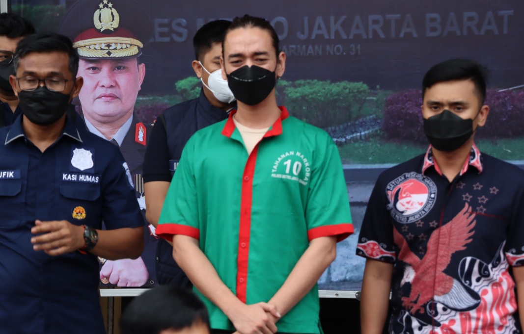 Kasat Narkoba Polres Metro Jakarta Barat Kompol Danang Setyo memastikan hasil tes urine tersangka positif menggunakan ganja.