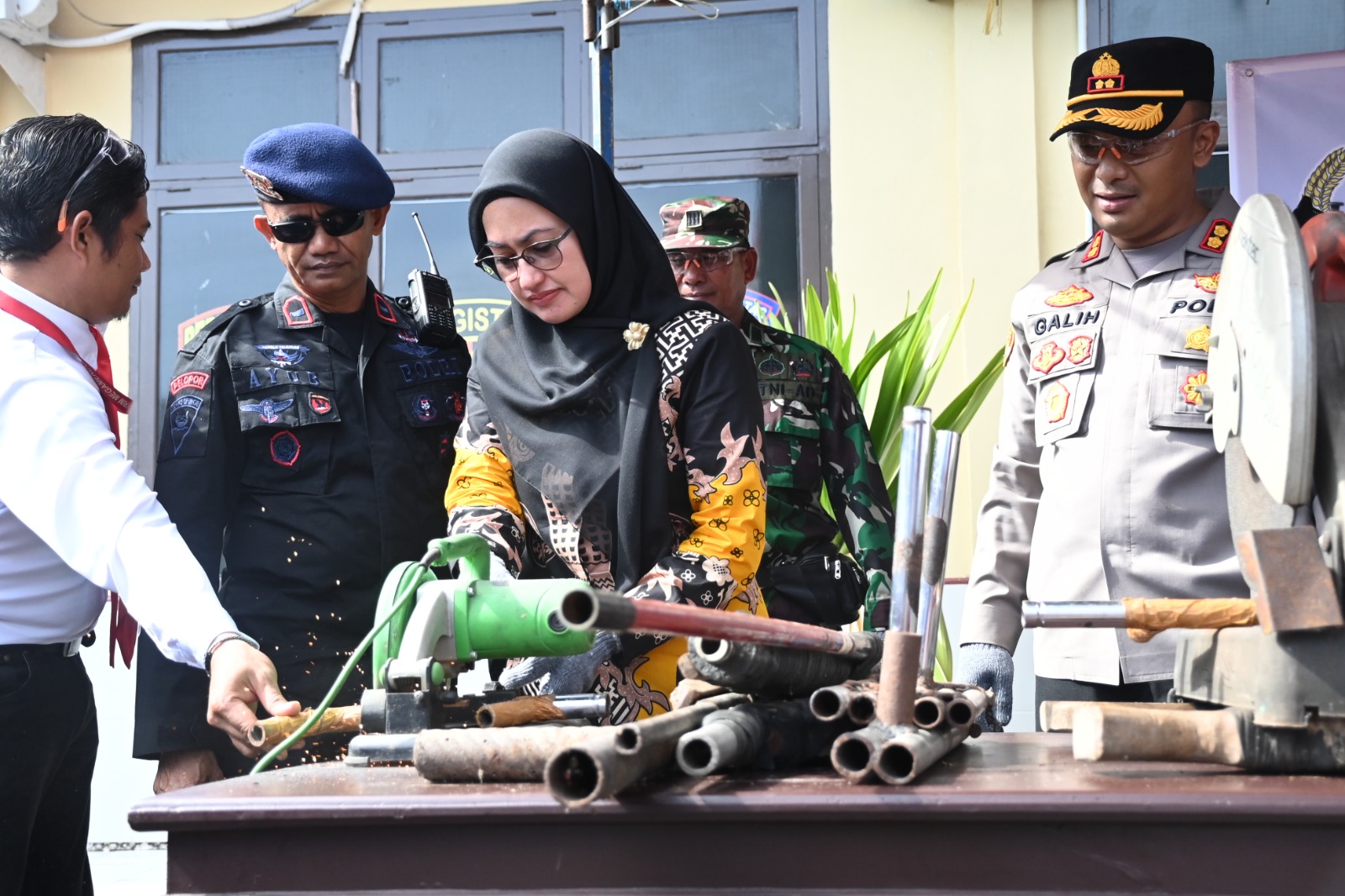 Hal itu disampaikan Bupati Luwu Utara, Indah Putri Indriani usai ikut melakukan Pemusnahan Barang Bukti berupa senjata tajam dan senjata rakitan di Mapolres Luwu Utara.
