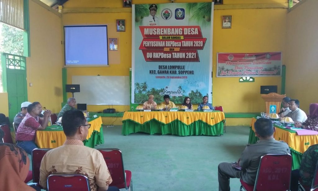 REPUBLIKNEWS.CO.ID, SOPPENG — Musrembang Desa dalam rangka penyusunan RKPDesa tahun 2020 dan DU RKPDesa di Desa Lompulle Kecamatan Ganra, digelar di Aula Desa Lompulle, Kabupaten Soppeng, Kamis (26/09/2019).