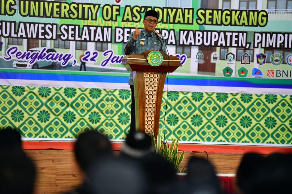 Dalam sambutanya, Nurdin Abdullah juga mendukung penuh perubahan-perubahan nama kampus Institusi Agama Islam (IAI) As’adiyah menjadi Islam University Of As’adiyah (UIA) Sengkang.