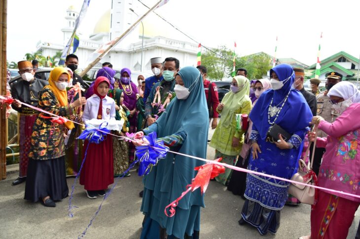 REPUBLIKNEWS.CO.ID, WAJO – Bunda PAUD Sulsel, Naoemi Octarina melakukan pengguntingan pita pada peresmian Taman Baca La Tinringeng To Taba di Kantor Dinas Perpustakaan dan Arsip Daerah Kabupaten Wajo, belakang Tribun Lapangan Merdeka, Kota Sengkang, Selasa (29/03/2022) kemarin.