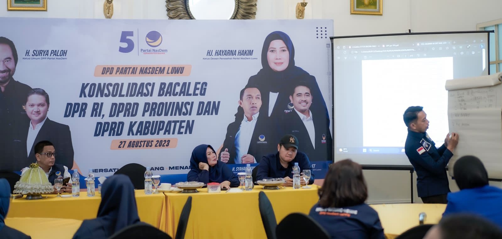 Konsolidasi dipimpin langsung Sekretaris DPW NasDem Sulsel Syaharuddin Alrif, Ketua Bappilu NasDem Sulsel Rudianto Lallo, Sekretaris Bappilu NasDem Sulsel Aminuddin Sukardi, Wakil Ketua DPW NasDem Sulsel di antaranya, A Ikhsan Hamid alias Enda, Mustaqim Musma, dan Wasianto alias Sinto.
