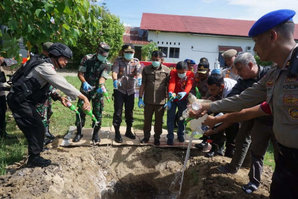 Untuk pemusnahan barang bukti miras, pemusnahannya dilakukan dengan cara dimusnahkan dengan cara dituangkan ke dalam lubang yang sudah di gali.