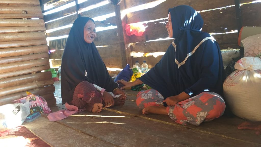 Kepala Desa Turu Adea Kabupaten Bone, Ashirah Rashid, berbincang dengan Nenek Sitti.