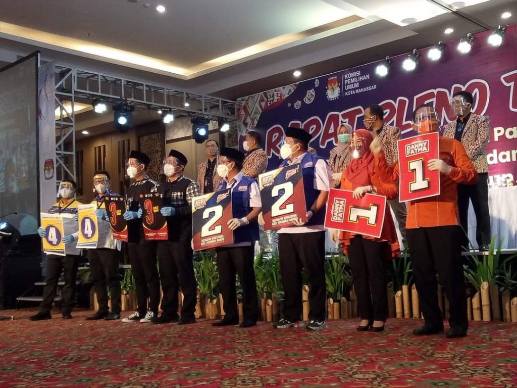 “Jadi Pak Danny-Fatmawati mendapat nomor urut 1, Pak Munafri-Abd Rahman Bando di nomor urut 2, Pak Syamsu Rizal-Fadli nomor urut ke 3, serta Irman-Andi Zunnun di nomor urut 4,” kata Komisioner KPU Kota Makassar, Gunawan Mashar.