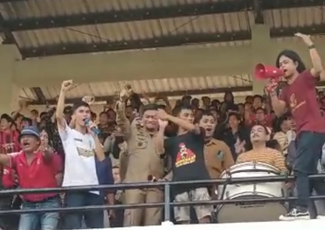 Di sela-sela pertandingan para penonton yang merupakan suporter dari kedua klub sepakbola tersebut bersorak menyampaikan terimakasihnya kepada Bupati Gowa.