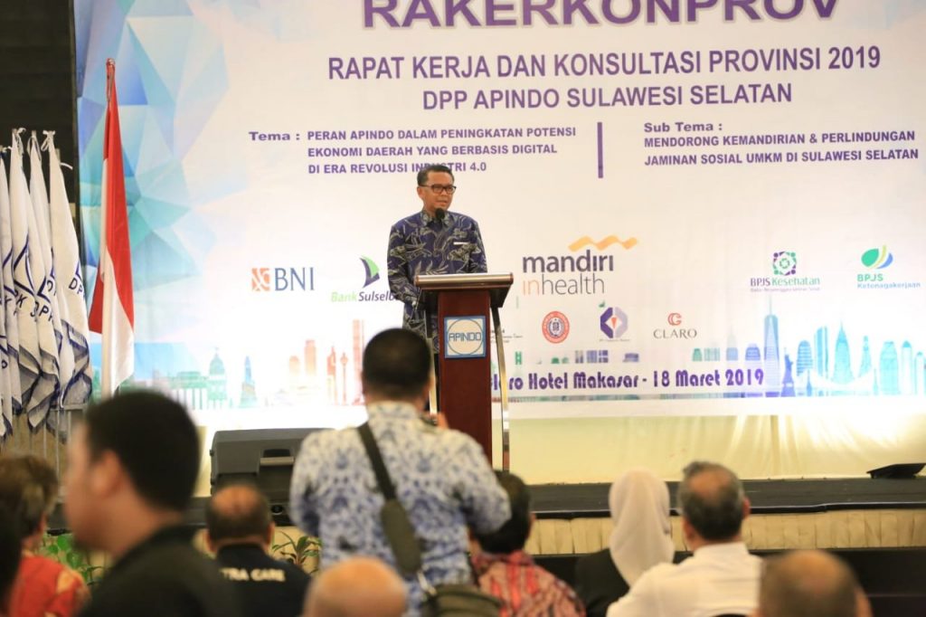 Hal ini disampaikan Nurdin Abdullah saat menghadiri Rapat Kerja dan Konsultasi Provinsi 2019 DPP Apindo Sulsel, di Ballroom Hotel Claro Makassar, Senin (18/03/2019).
