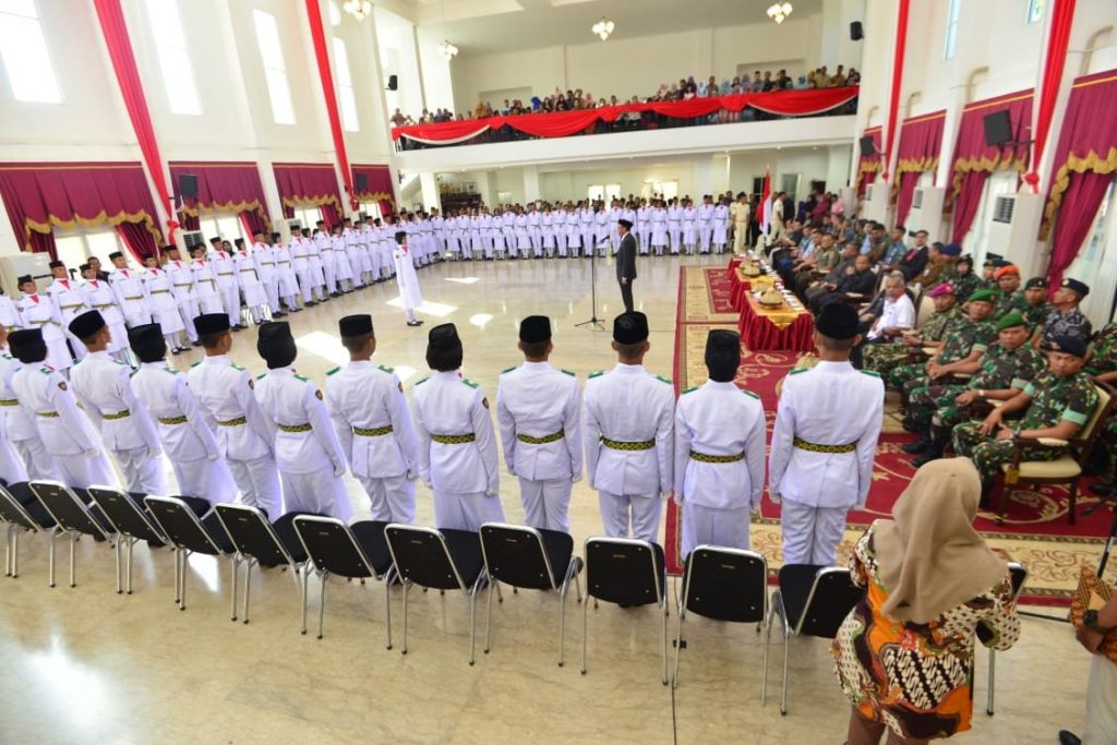 Pengukuhan Anggota Paskibraka Provinsi Sulawesi Selatan, di Baruga Karaeng Pattingalloang, di Rujab Gubernur Sulsel, Jumat (16/08/2019).