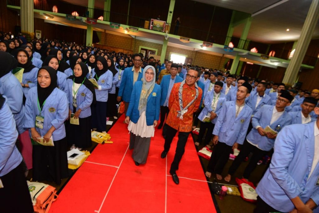 Gubernur Sulsel didampingi langsung Rektor Universitas Islam Makassar, Dr Majdah Muhyiddin Zain dan seluruh Civitas akademika UIM Makassar. (Latif)