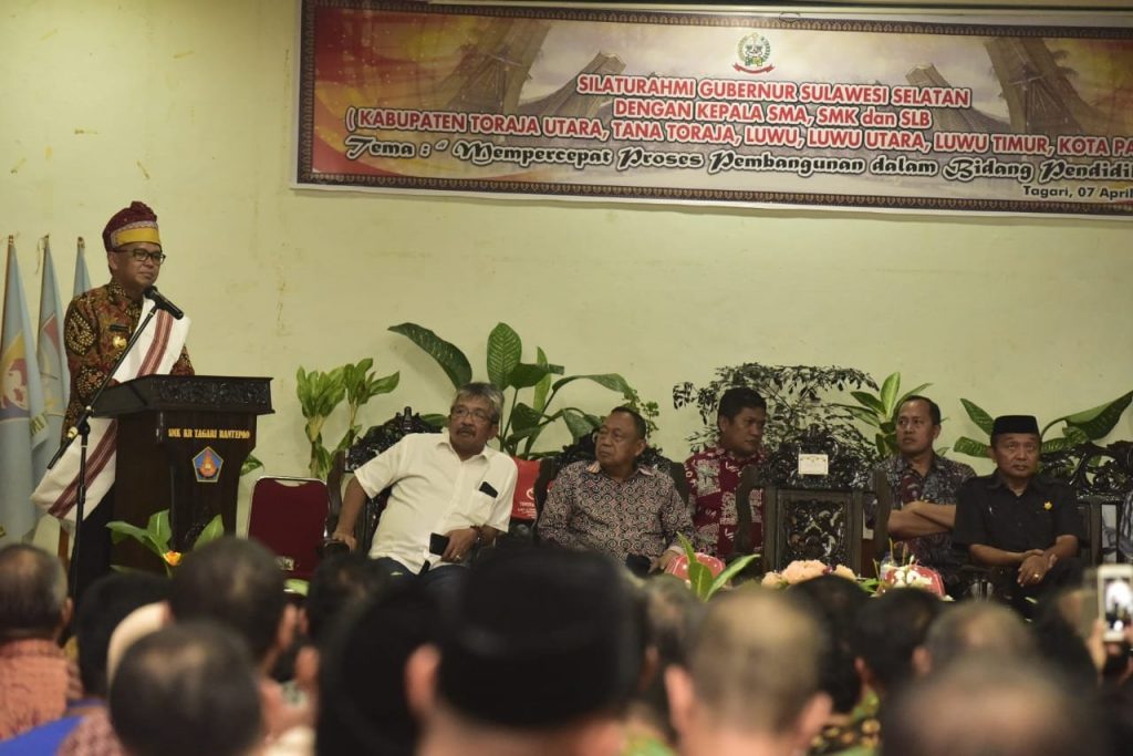 Hal ini ditegaskan Nurdin Abdullah di hadapan seluruh Kepala Sekolah SMA, SMK, dan SLB dari Toraja dan Luwu Raya pada acara Penguatan Pejabat Pemprov Sulsel yang bertugas di SMA, SMK dan SLB yang berlangsung di Tagiri Makale, Toraja Utara, Minggu (07/04/2019) kemarin.