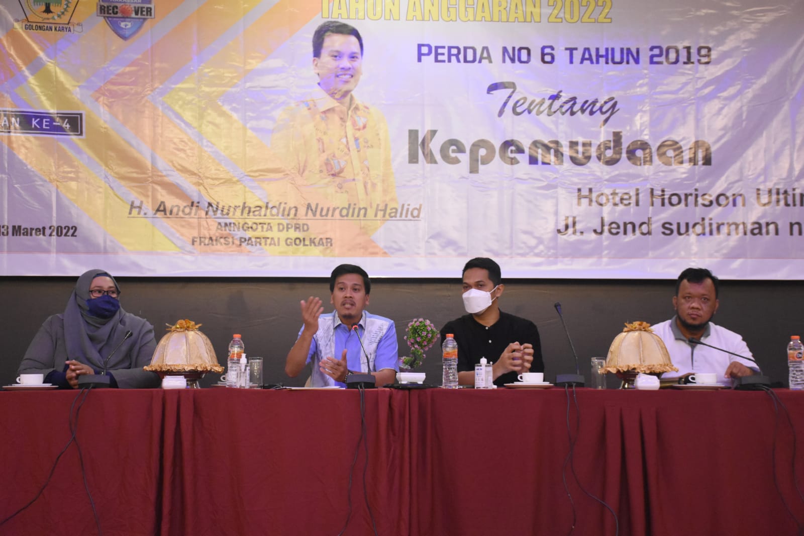 “Pemuda harus adaptif, kreatif, mampu bersaing dan hadir memberikan solusi ditengah masyarakat,” kata Nurhaldin saat menggelar Sosialisasi Perda Nomor 6 tahun 2019 tentang Kepemudaan, di Hotel Horison Ultima, Jalan Jenderal Sudirman, Minggu (13/3/2022).