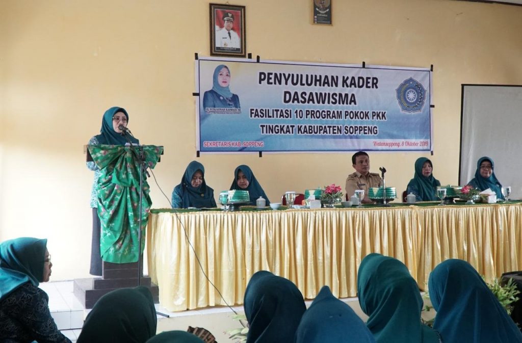 REPUBLIKNEWS.CO.ID, SOPPENG — Ketua Tim Penggerak PKK Kabupaten Soppeng Hj.Nurjannah Kaswadi memberikan Penyuluhan kepada Kader Dasawisma, di Aula pertemuan Kantor Kecamatan Ganra, Selasa (08/10/2019).