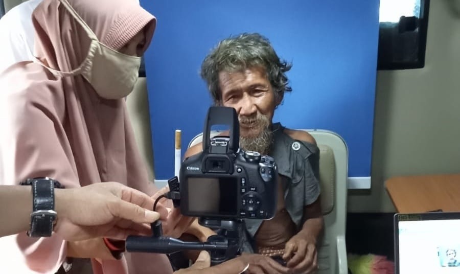 Melalui Dinas Kependudukan dan Pencatatan Sipil (Disdukcapil) melakukan perekaman biometrik kepada Sunandar, Selasa (04/01/2022).