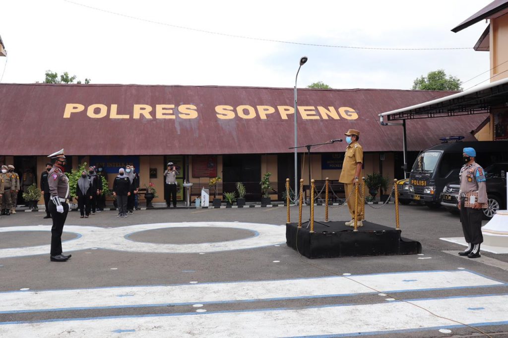 Bupati Soppeng Andi Kaswadi Razak, yang membacakan amanat serentak Kapolri bahwa Apel gelar pasukan sebagai bentuk pengecekan akhir kesiapan pelaksanaan Ops Ketupat 2021 dalam rangka pengamanan Hari Raya Idul Fitri, Sarana dan prasarana Personil, Keterlibatan TNI, Pemda dan mitra Kamtibmas.