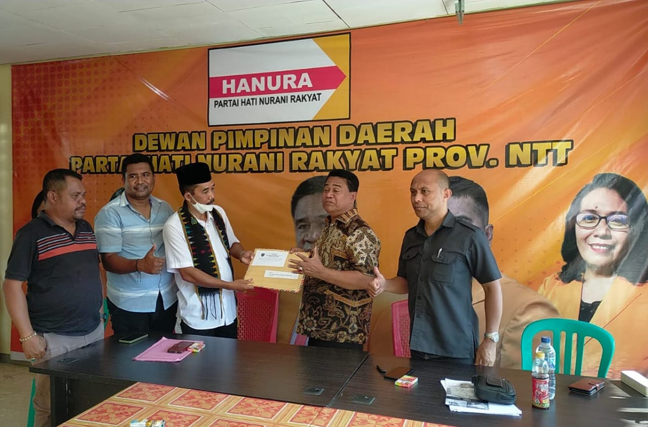 Berkas permohonan dukungan yang diterima Langsung oleh Ketua DPD Hanura didampingi Sekretaris Elias Koa, Ketua Bappilu Srianus Wokaritan dan Anggota DPRD Fraksi Hanura Provinsi NTT Paulinus Y. Nuwa Veto.
