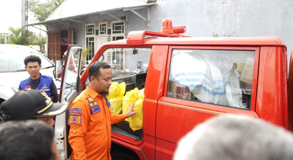 Ia pun juga tampak berdiskusi dengan masyarakat sekitar. Sekaligus menyerahkan bantuan logistik kepada korban terdampak banjir.
