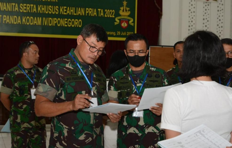 REPUBLIKNEWS.CO.ID, SEMARANG — Proses penerimaan Calon Bintara (Caba) PK TNI AD reguler wanita dan keahlian pria TA. 2022 wilayah Kodam IV/Diponegoro memasuki tahapan sidang Penentuan Akhir (Pantukhir) yang dipimpin oleh Pangdam IV/Diponegoro Mayjen TNI Widi Prasetijono, bertempat di Balai Diponegoro. Jumat (29/07/2022).
