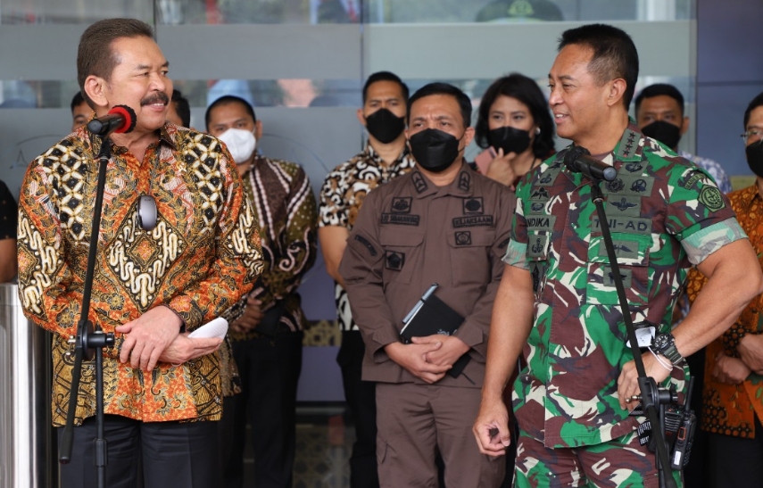 Panglima TNI juga mengatakan bahwa salah satu tujuan kedatangan hari ini adalah dalam rangka membuat dua institusi Kejaksaan RI dan Tentara Nasional Indonesia (TNI) saling memahami.
