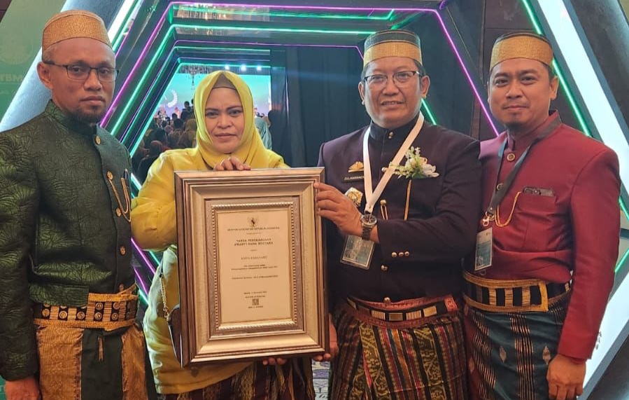 Rombongan Parepare kompak hadir mengenakan pakaian adat tradisional Bugis Makassar saat penerimaan penghargaan.