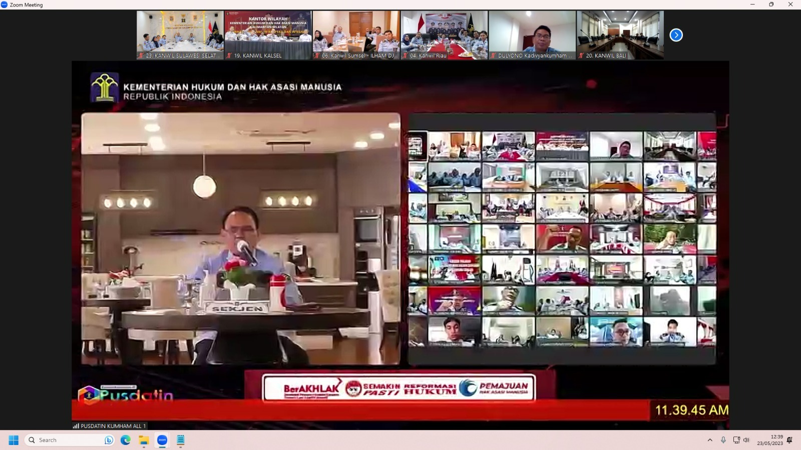 Hadir secara virtual dari Kanwil Kemenkumham Sulsel yakni Kepala Divisi (Kadiv) Pelayanan Hukum dan HAM, Hernadi. Kemudian hadir secara virtual di Jakarta yakni Kakanwil Kemenkumham Sulsel Liberti Sitinjak, Kepala Divisi (Kadiv) Administrasi Indah Rahayuningsih, Kadiv Pemasyarakatan Suprapto, dan Kadiv Keimigrasian Jaya Saputra.