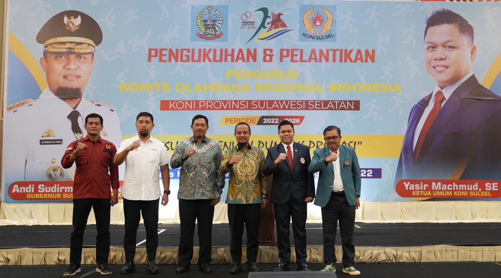 REPUBLIKNEWS.CO.ID, MAKASSAR — Gubernur Sulawesi Selatan, Andi Sudirman Sulaiman menghadiri pengukuhan dan pelantikan Pengurus Komite Olahraga Nasional Indonesia (KONI) Sulsel Periode 2022-2026 di Hotel Claro, Rabu (10/08/2022). Selain itu, melauching secara resmi Logo Pekan Olahraga Provinsi (PORPROV) Sulsel Ke-17 yang akan dilaksanakan di Kabupaten Bulukumba dan Kabupaten Sinjai.