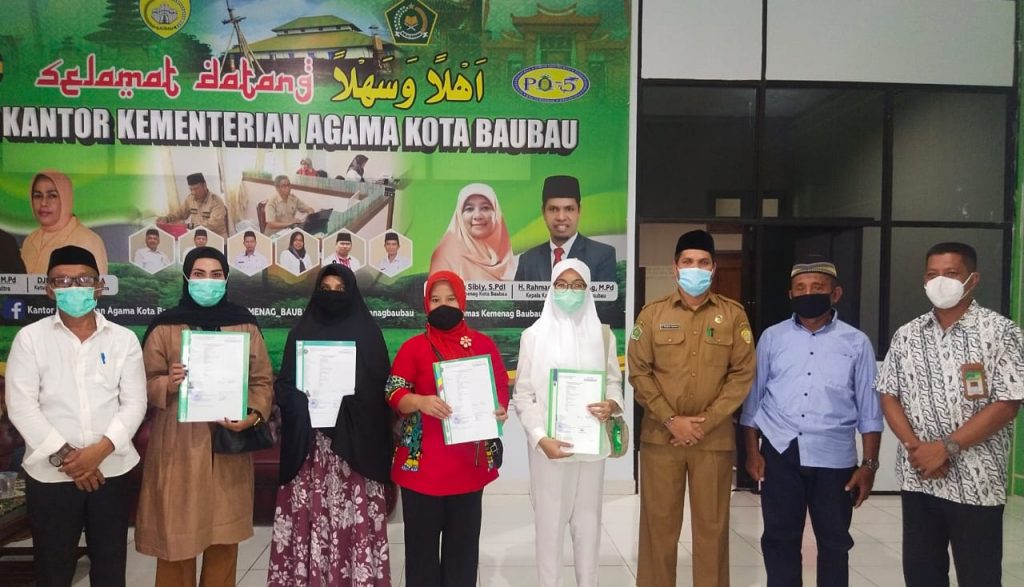 Kepala Kemenag Baubau dan Rombongan Tim Rekam Biometrik beserta jemaah haji penerima pelimpahan porsi Jemaah Haji. Foto: Humas Kemenag Baubau