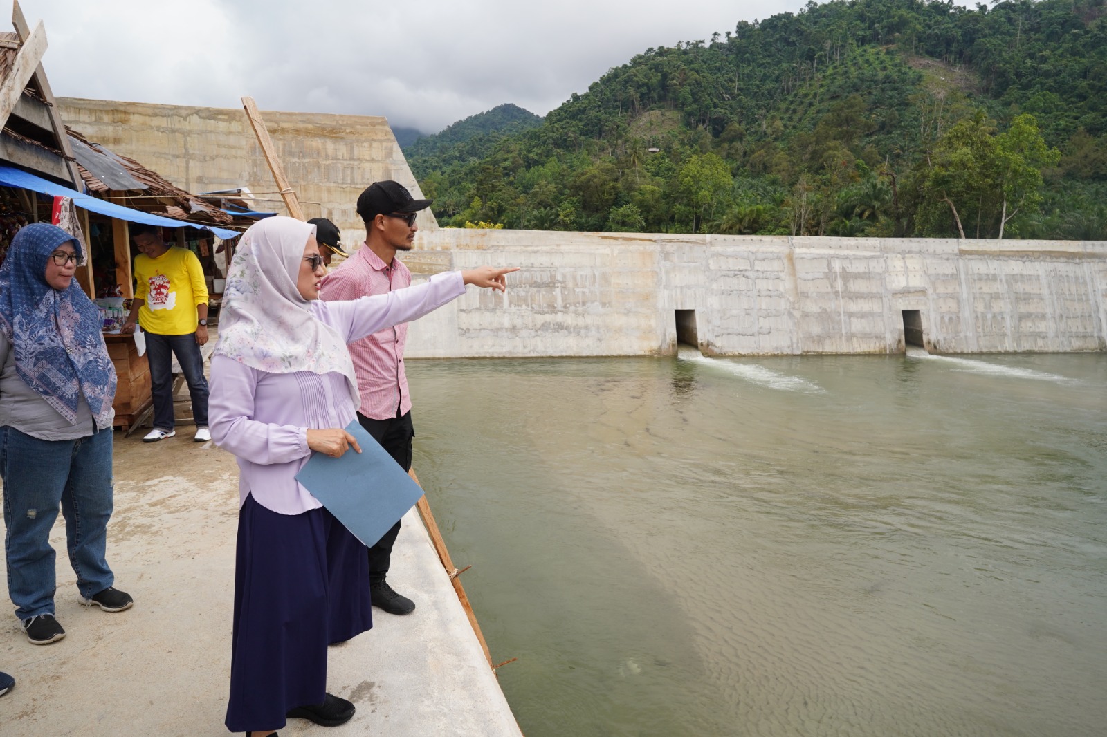 Bupati Luwu Utara, Indah Putri Indriani, meninjau langsung kondisi dan pemanfaatan dari dua bangunan yang berfungsi sebagai pengendali sedimen ini.
