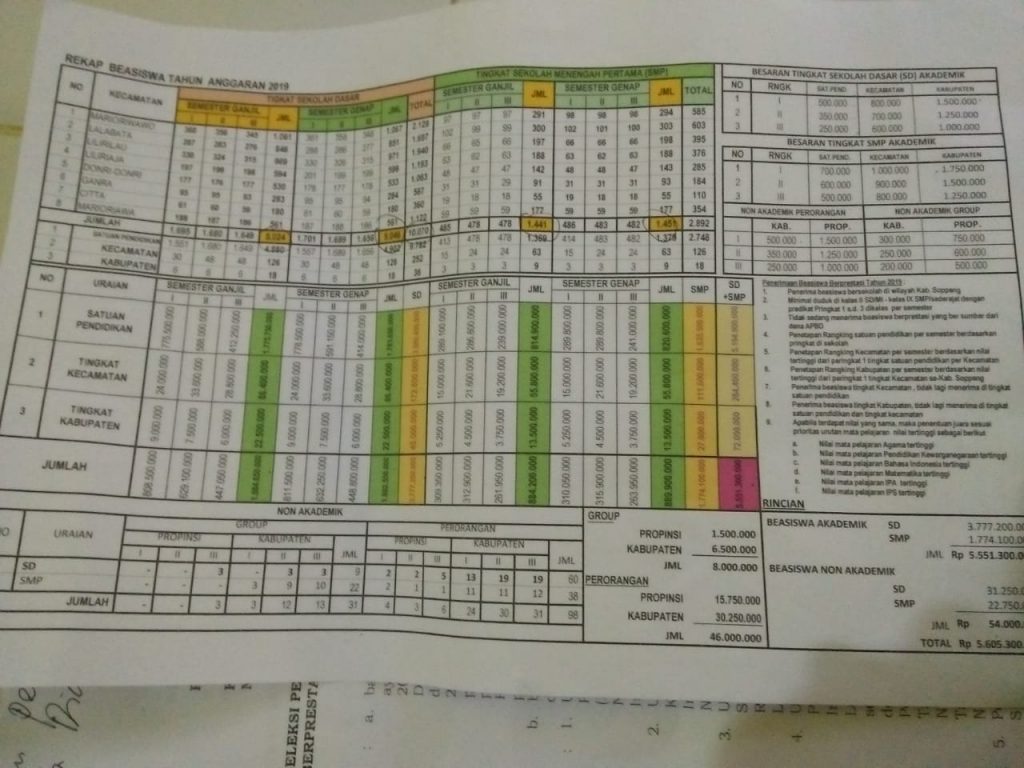 Total Dana untuk peserta Didik, Beasiswa Akademik dan Non Akademik tahun 2019 pada Dinas Pendidikan dan Kebudayaan Kabupaten Soppeng sebesar Rp.5.605.300.000. (Yusuf)