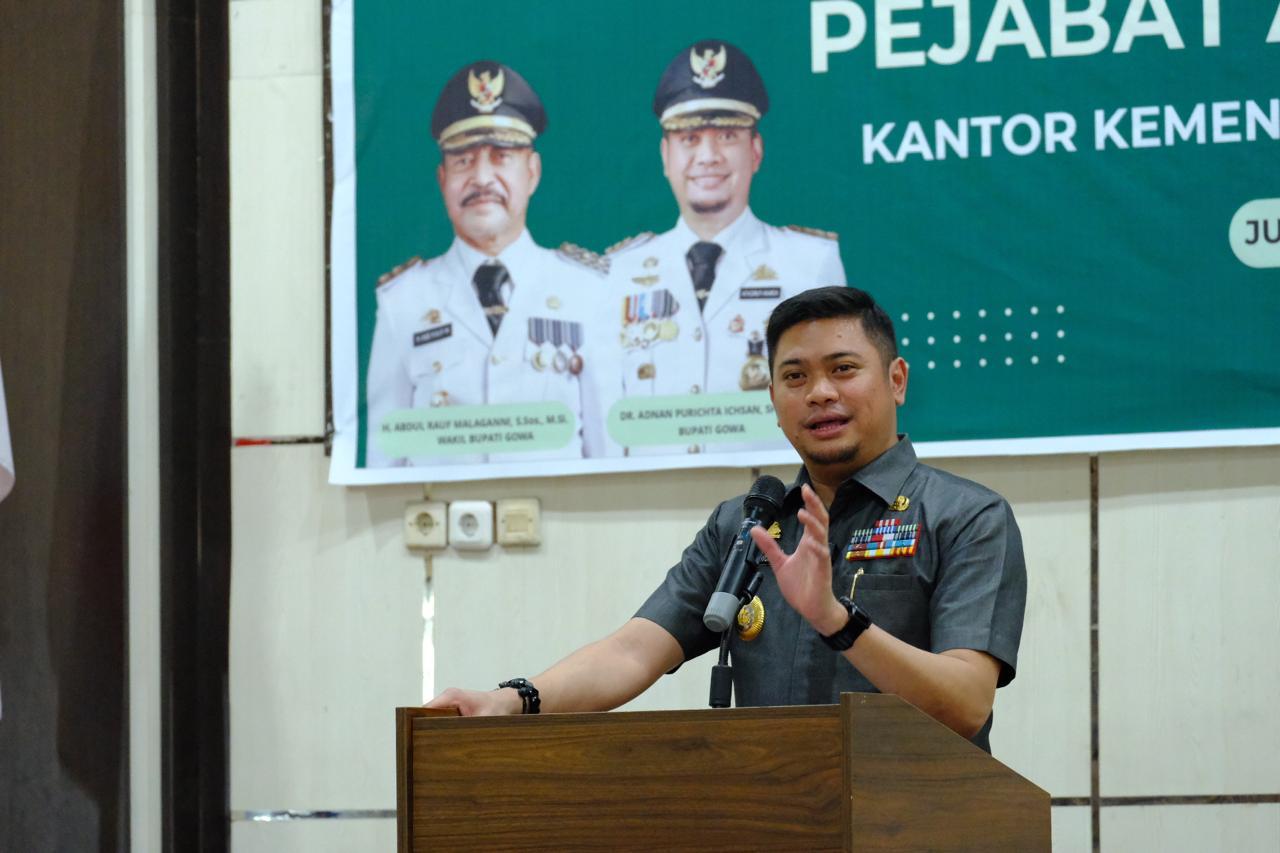 Dalam kesempatan ini, Adnan menyampaikan terimakasihnya kepada Kepala Kantor Kemenag Gowa yang lama yakni Aminuddin yang telah bekerjasama dan berkolaborasi membantu pemerintah dan lapisan masyarakat selama menjabat dua tahun lebih.