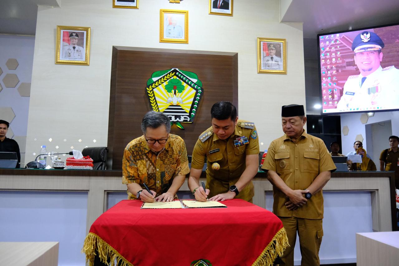 Proses penandatanganan kerjasama dilakukan langsung Bupati Gowa di damping Wakilnya Abd. Rauf Malaganni Bersama Senior Director Yayasan Putera Sampoerna, Elan Merdy.