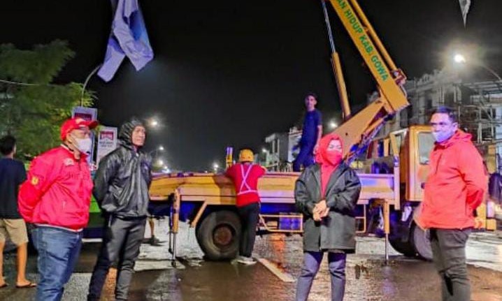 “Alhamdulillah kemarin kita kerjakan dengan berkoordinasi dengan pihak terkait. Dukungan paling besar itu dari DLH karena kita pakai alatnya. Begitupun dengan kepolisian karena tadi malam kita tutup separuh jalan,” ungkapnya.