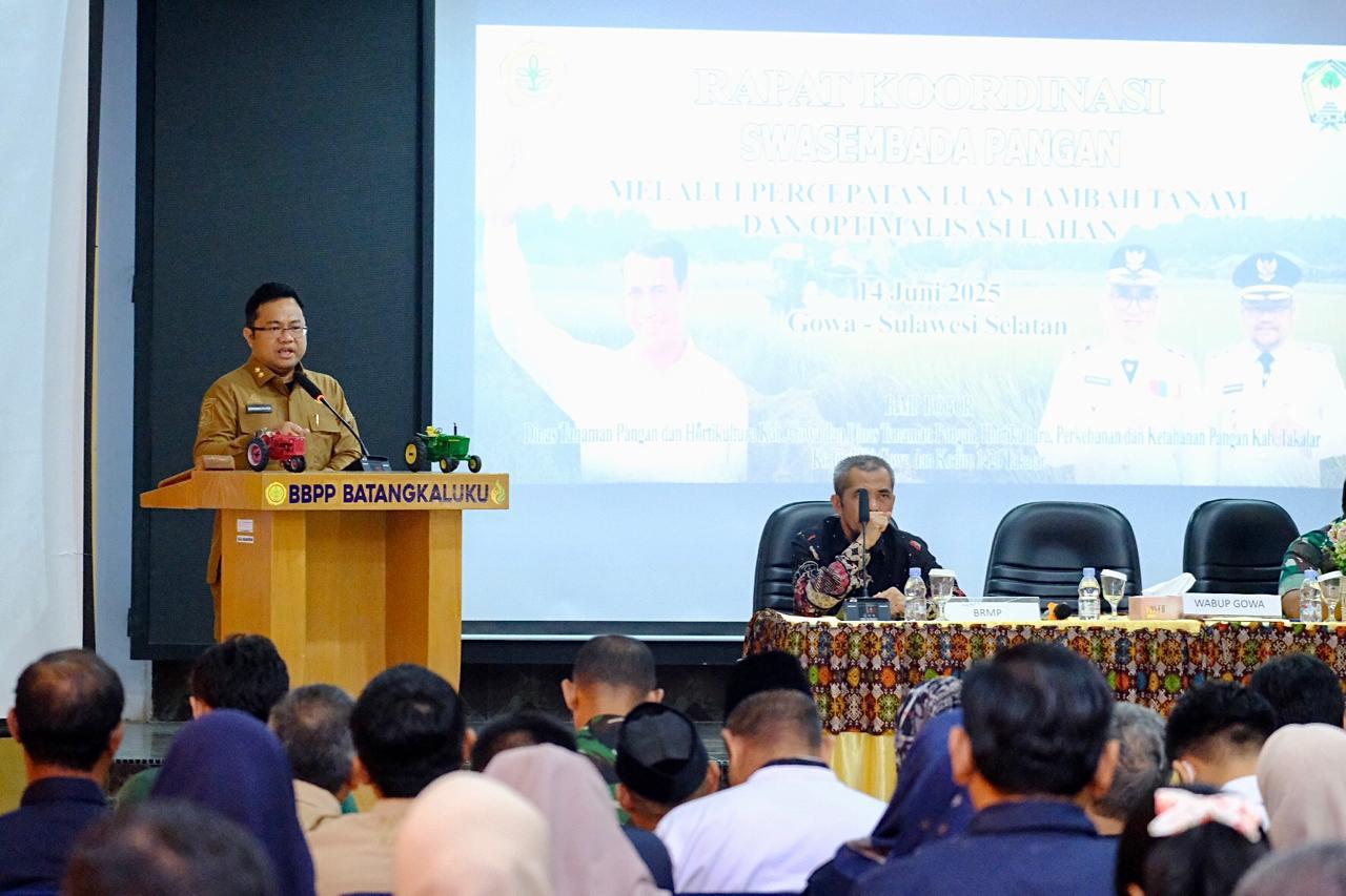 “Pemerintah Kabupaten Gowa berkomitmen merealisasikan program di tahun ini guna mendongkrak kesejahteraan petani dan ketahanan pangan, khususnya di Kabupaten Gowa,” ujar Wakil Bupati Gowa, Darmawangsyah Muin pada Rapat Koordinasi (Rakor) Swasembada Pangan Melalui Percepatan Luas Tambah Tanam (LTT) dan Optimalisasi Lahan, di Aula Balai Besar Pelatihan Pertanian Batang Kaluku, Sungguminasa, Sabtu (14/06/2025).