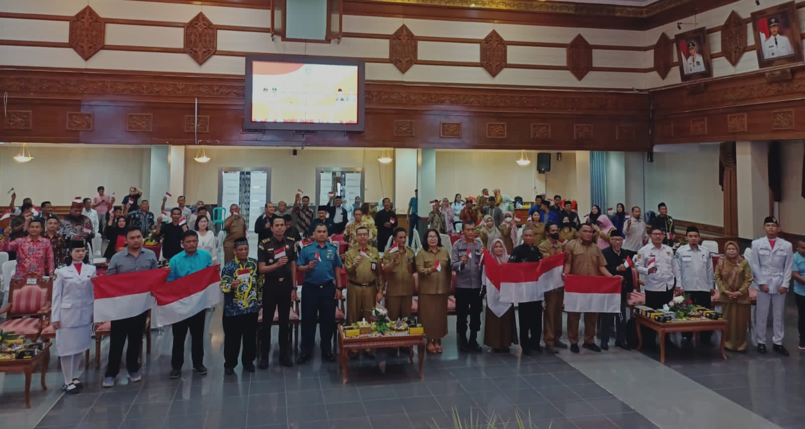 Sosialiasi Wasbang yang mengusung tema ‘Penguatan Ideologi Pancasila, dan Wawasan Kebangsaan mari Kita jaga Persatuan dan Kesatuan Bangsa, ini dirangkai dengan acara penyerahan bendera merah putih kepada perwakilan kepala desa dan Ketua RT se- Kecamatan Sangatta Utara dan Kecamatan Selatan Selatan. (ADV/IM)
