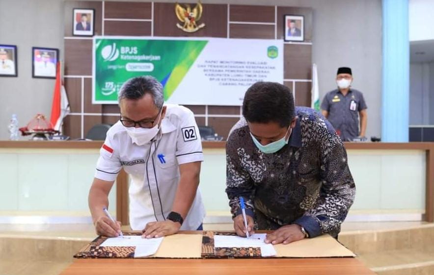 Penandatanganan kerjasama ini dilakukan langsung Wakil Bupati (Wabup) Luwu Timur, Budiman bersama Kepala BPJS Ketenagakerjaan Robby yang disaksika oleh sejumlah Kepala Satuan Kerja Perangkat Daerah (SKPD).