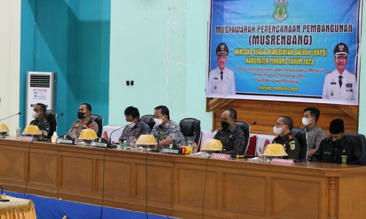 REPUBLIKNEWS.CO.ID, PINRANG — Pemerintah kabupaten Pinrang melalui Badan Perencanaan Pembangunan, Penelitian dan Pengembangan Daerah (Bappelitbangda) Kabupaten Pinrang menggelar Musyawarah Perencanaan Pembangunan (Musrenbang) Rencana Kerja Pemerintah Daerah (RKPD) tingkat Kabupaten Pinrang tahun 2023, Kamis (24/03/2022) di Ruang Pola Kantor Bupati Pinrang.