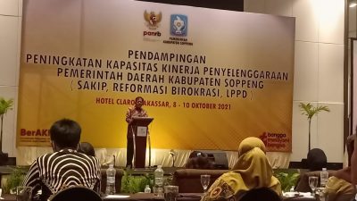 REPUBLIKNEWS.CO.ID, SOPPENG — Pembukaan pendampingan peningkatan kapasitas kinerja penyelenggaraan Pemerintah Kabupaten Soppeng (SAKIP, Reformasi Birokrasi, LPPD), berlangsung di Hotel Claro Makassar, Jumat (08/10/2021) lalu.