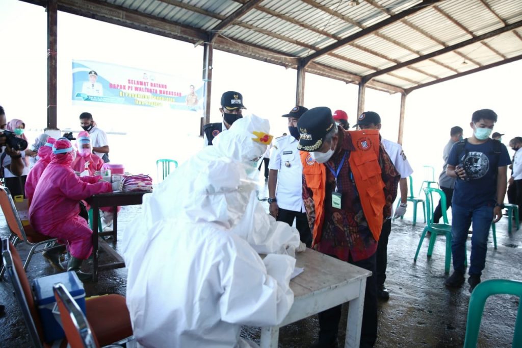 Kunjungan tersebut, melihat langsung proses kegiatan pengambilan rapid test pada sejumlah pedagang dan pengunjung Paotere.
