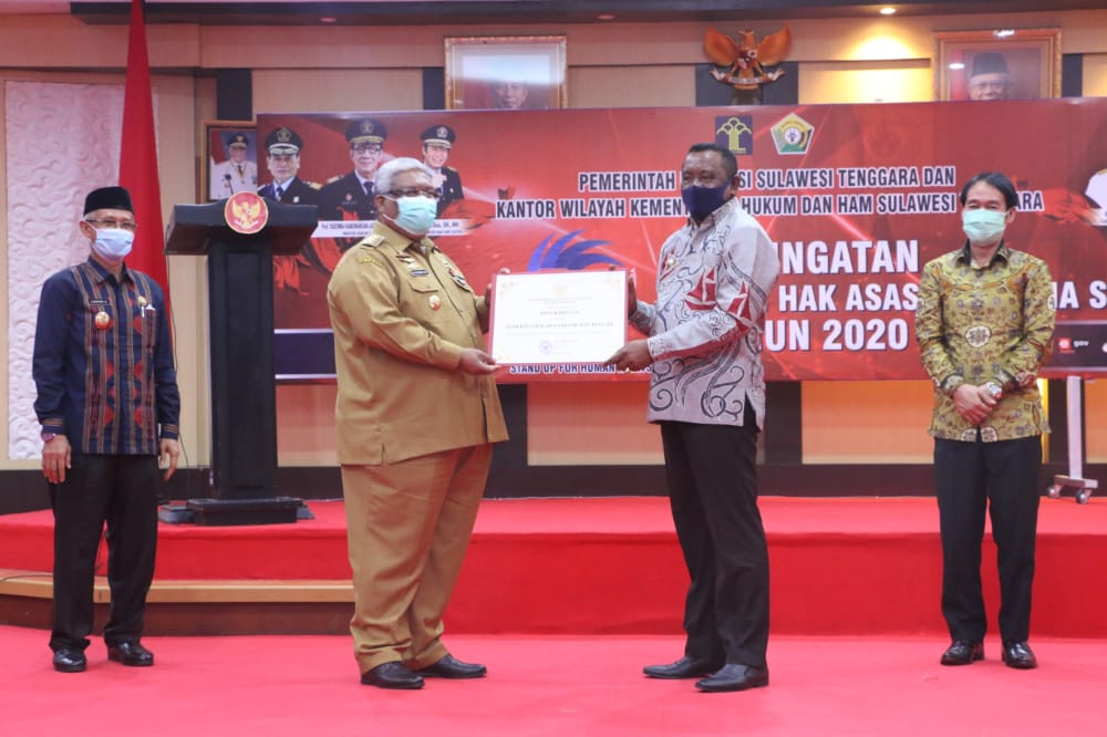 Penghargaan yang diperoleh Pemprov Sultra dari Kemenkumham diserahkan oleh Kepala Kantor Wilayah Kemenkumham Sultra Sofyan kepada Gubernur Ali Mazi. Penghargaan ini diberikan atas upaya Pemprov Sultra membina dan membangun sebagian kabupaten/kota peduli HAM pada tahun 2019.