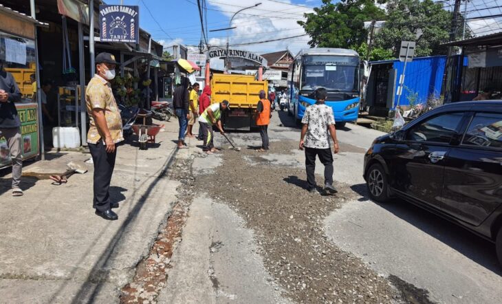 Penanganan ruas Jalan Antang Raya dilakukan pemeliharaan rutin. Dengan penimbunan jalanan yang berlubang.