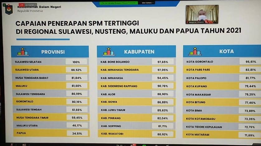 REPUBLIKNEWS.CO.ID, MAKASSAR – Standar Pelayanan Minimal (SPM) yang dilaksanakan oleh Pemprov Sulsel menjadi yang terbaik dan memperoleh nilai tertinggi 100 persen di regional Sulawesi, Nusa Tenggara, Maluku dan Papua atau Kawasan Timur Indonesia (KTI) untuk tahun 2021.