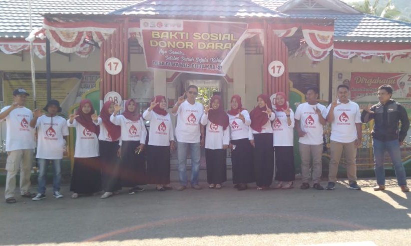 Bakti Sosial tersebut terselenggara atas kerjasama pemuda siaga Blbencana, karang taruna, remaja islam, dan pengurus perpustakaan mutiara ilmu desa citta kecamatan citta, dengan mengangkat tema ‘Setetes Darah Sejuta Kehidupan’.
