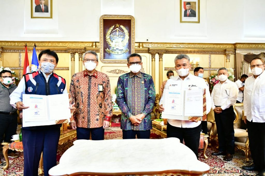 REPUBLIKNEWS.CO.ID MAKASSAR — Gubernur Sulawesi Selatan, Prof HM Nurdin Abdullah menyaksikan proses penandatanganan kontrak kerja pembangunan gedung Twin Tower antara PT. Sulsel Citra Indonesia (Perseroda) Sulsel dengan PT. Waskita Karya, di Gubernuran, Rabu (04/11/2020).