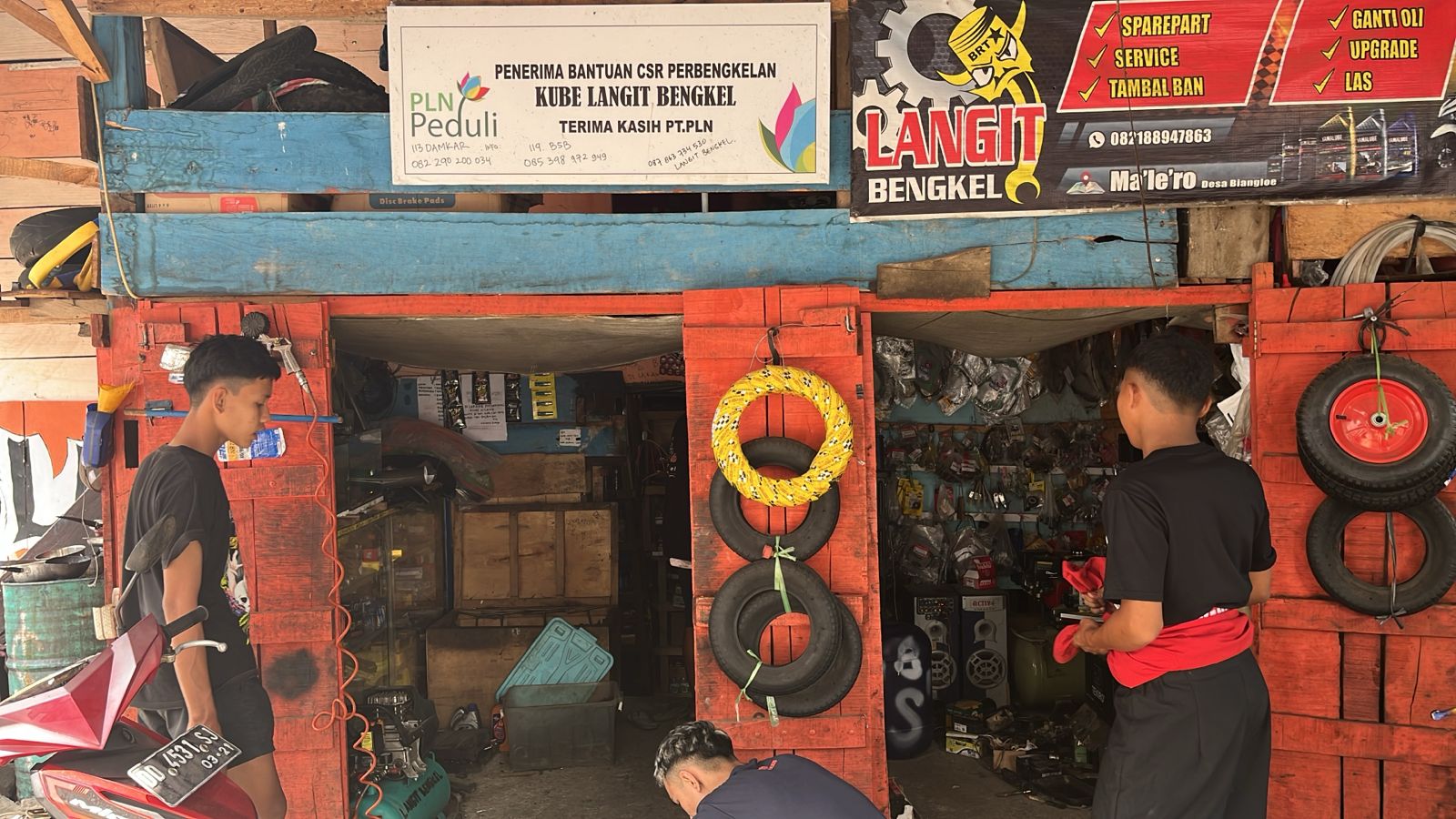 “Dulu kami hanya punya alat seadanya. Sekarang berkat bantuan PLN, kami punya alat-alat bengkel yang lengkap. Kompresor, alat buka ban, mesin las, semua sangat membantu pekerjaan kami. Pelanggan juga makin banyak, bahkan bengkel kami direkomendasikan dari mulut ke mulut,” ujarnya penuh semangat.