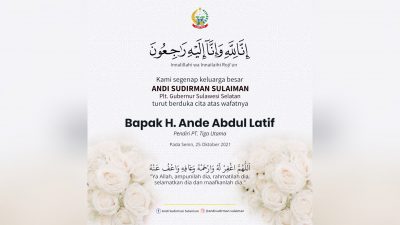 “Innalillahi Wa Innailaihi Roji’un, atas nama pribadi dan Pemerintah Provinsi Sulawesi Selatan mengucapkan turut berduka cita atas berpulangnya H. Ande Abdul Latief,” ujar Andi Sudirman Sulaiman.